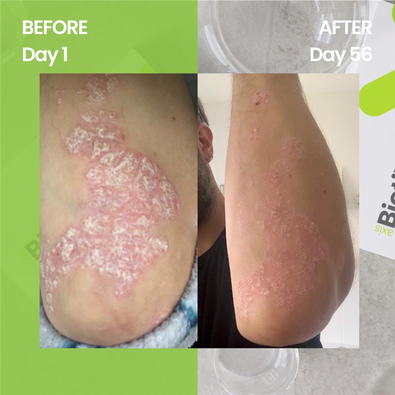 Our supplement has been used by thousands of customers, and we have had hundreds* of five-star reviews on its benefits. To test the effectiveness of our product, we conducted a consumer study on those with self-identified psoriasis, and our results showed that 70%+ experienced significant improvements in their skin, including skin that was less flaky, less red, less itchy, and less irritable.